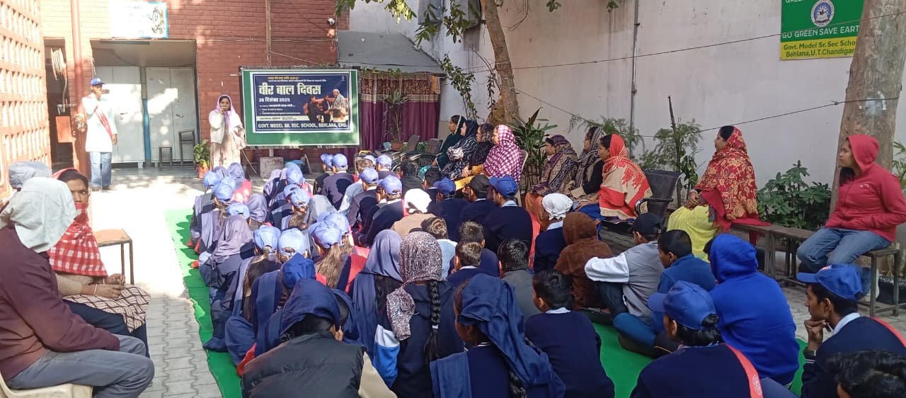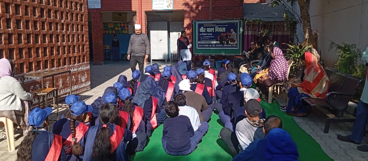 Veer Bal Diwas is celebrated in GMSSS Behlana today i.e. 26-12-2025. Veer Bal Diwas is observed every year on December 26 to honour the extraordinary courage and supreme sacrifice of the four Sahibzadas, the sons of Guru Gobind Singh Ji, the tenth Sikh Guru. Students were told about the importance of this day.